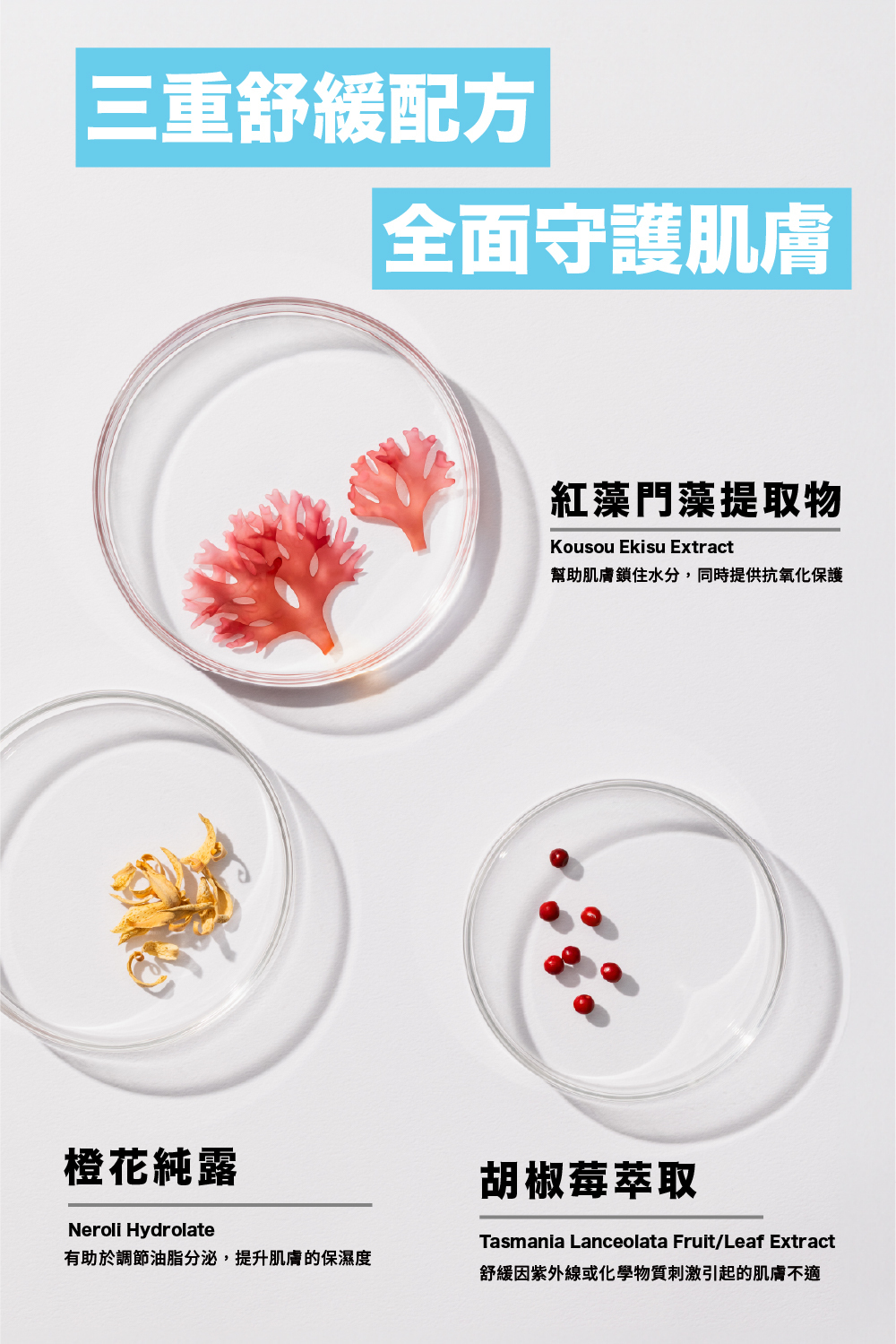 天然植萃配方全天候保濕,隨時舒緩乾燥肌膚不適。